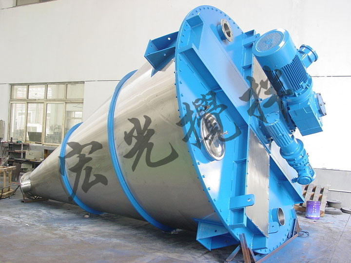單錐雙螺旋錐形混合機,它由傳動部分、筒蓋、螺旋、筒體、出料閥等組成。