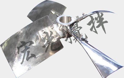 外緣的圓周速度一般為5~15m/s。旋槳式攪拌器主要造成軸 向液流,產(chǎn)生較大的循環(huán)量,適用于攪拌低粘度(<2Pa·s)液體、乳濁液及固體微粒含量低于10%的懸浮液。攪拌器的轉(zhuǎn)軸也可水平或斜向插入槽內(nèi),此時(shí)液流的循環(huán)回路不對稱,可增加湍動,防止液面凹陷。